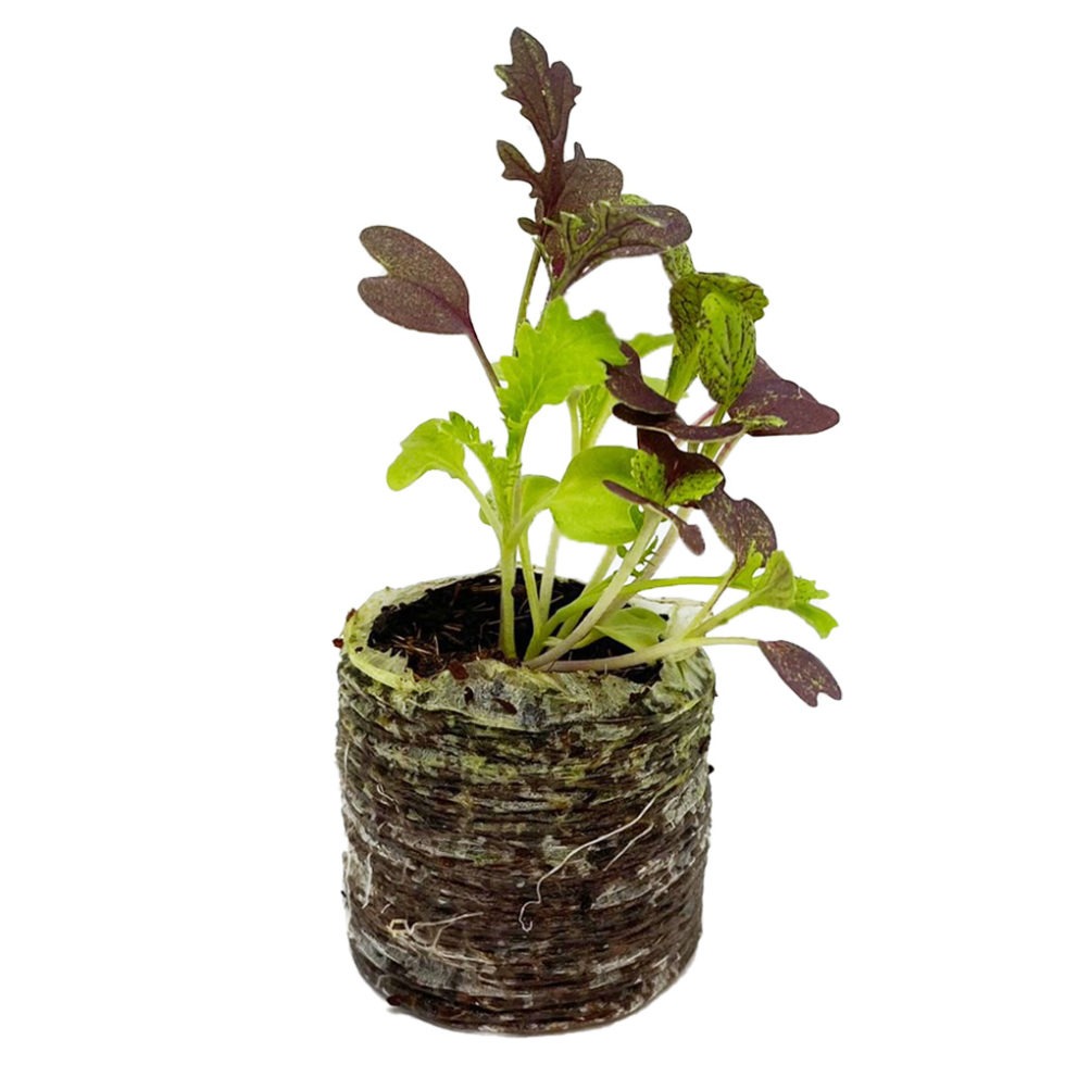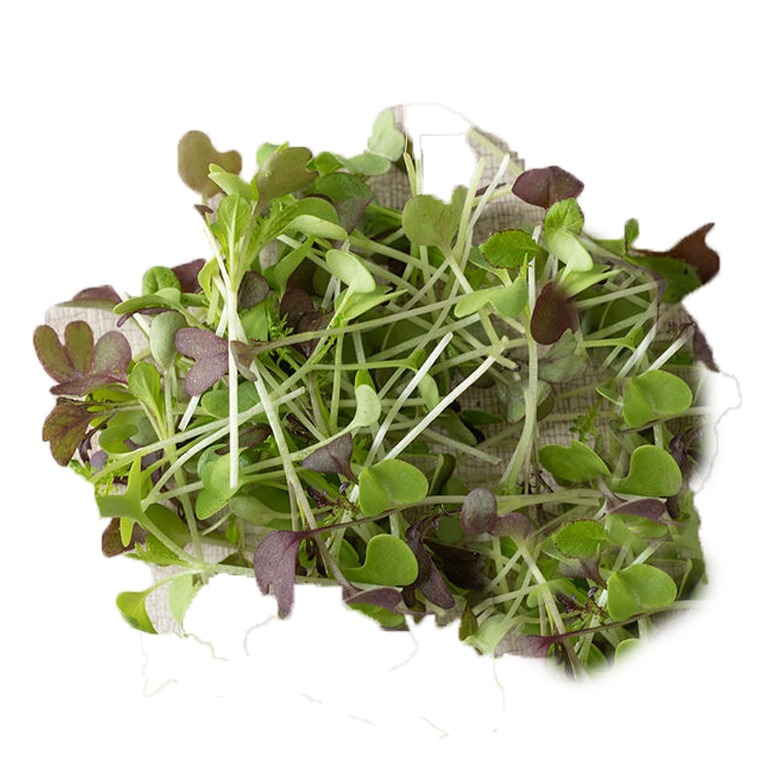 A colorful blend of red and green mustards with various textures. Spicy flavor pairs well with the Mild Micro Mix. Based on our yield trial, we recommend seeding 7.5 gm per tray at approx. 3.5 flats per oz of seed. Avg. days to maturity was 13.5 days when harvested at the first true leaf (as opposed to cotyledon) stage. Varieties are subject to change depending upon availability.